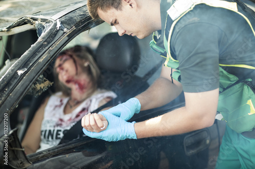 Paramedic Helping Car Crash Victim After Accident Stock Photo Adobe Stock